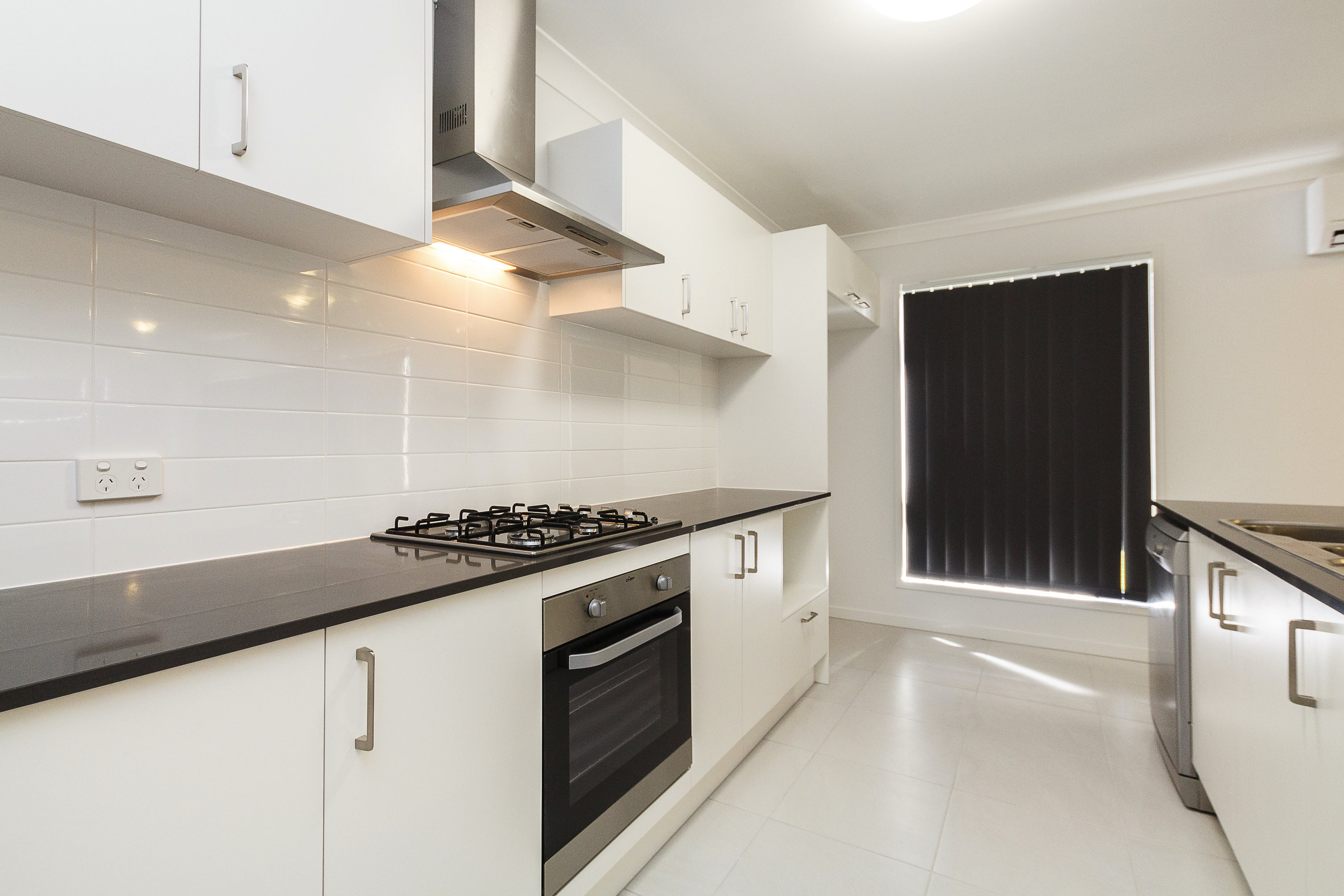 • Stone bench tops to kitchen with contemporary stainless steel appliances