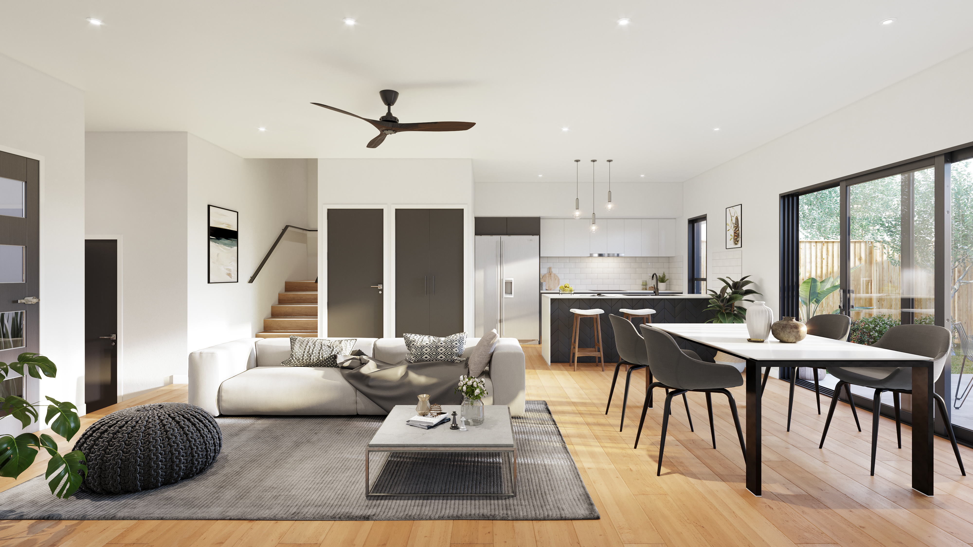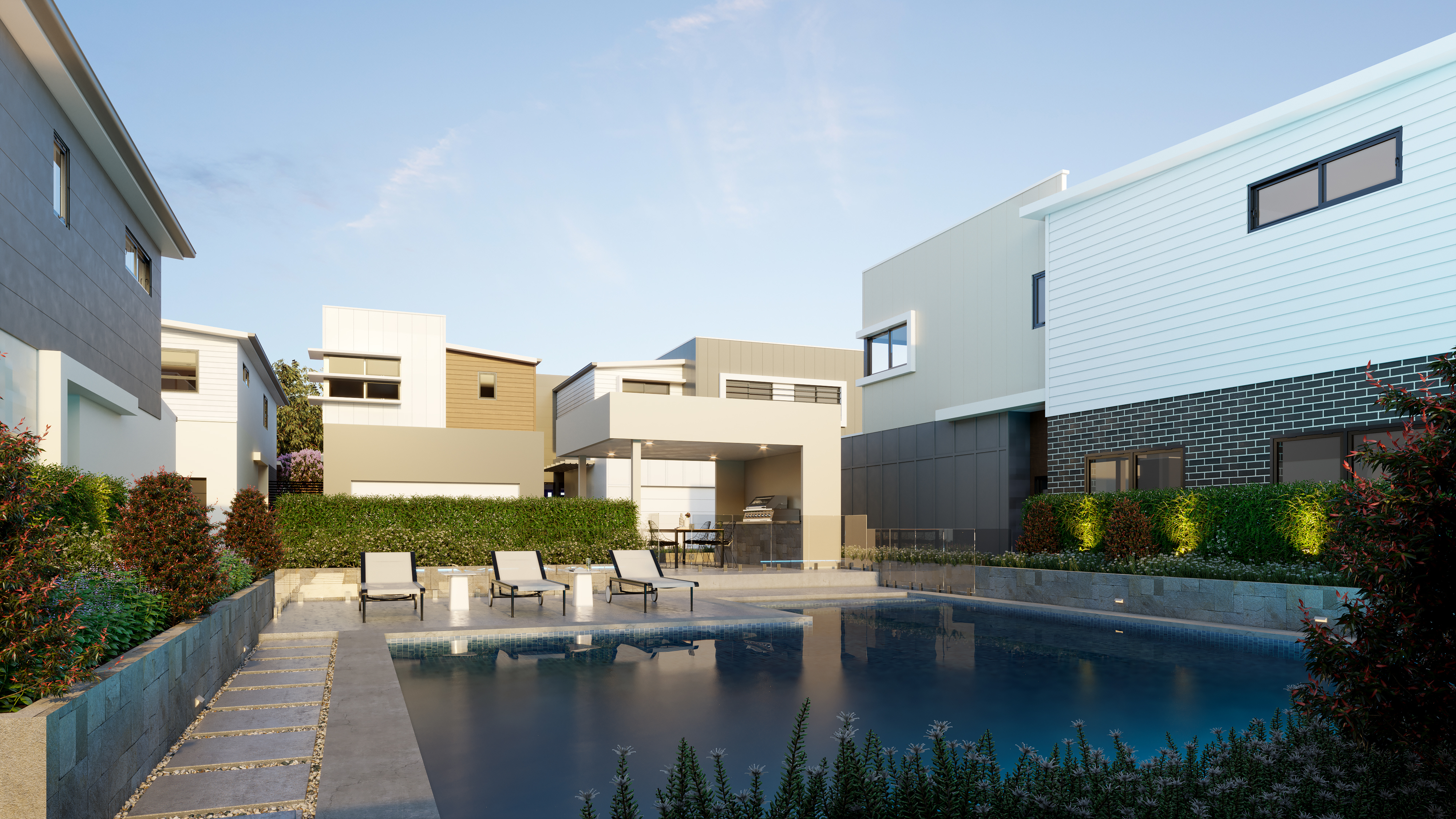 With choice of two contemporary colour schemes across 4 unique layouts, each townhouse features zoned ducted air-conditioning, en-suites to the master bedroom, stone benchtops in the kitchens and bathrooms, Bosch kitchen appliances and a combination of quality tiling, timber-look flooring and carpeting.